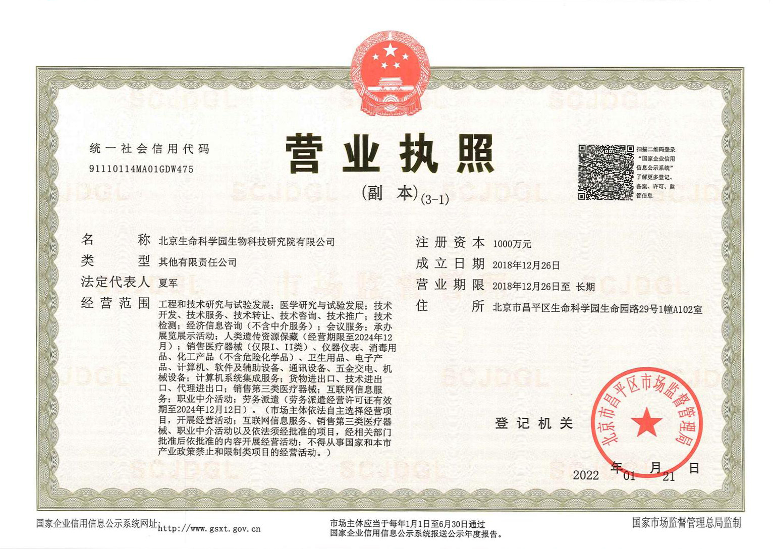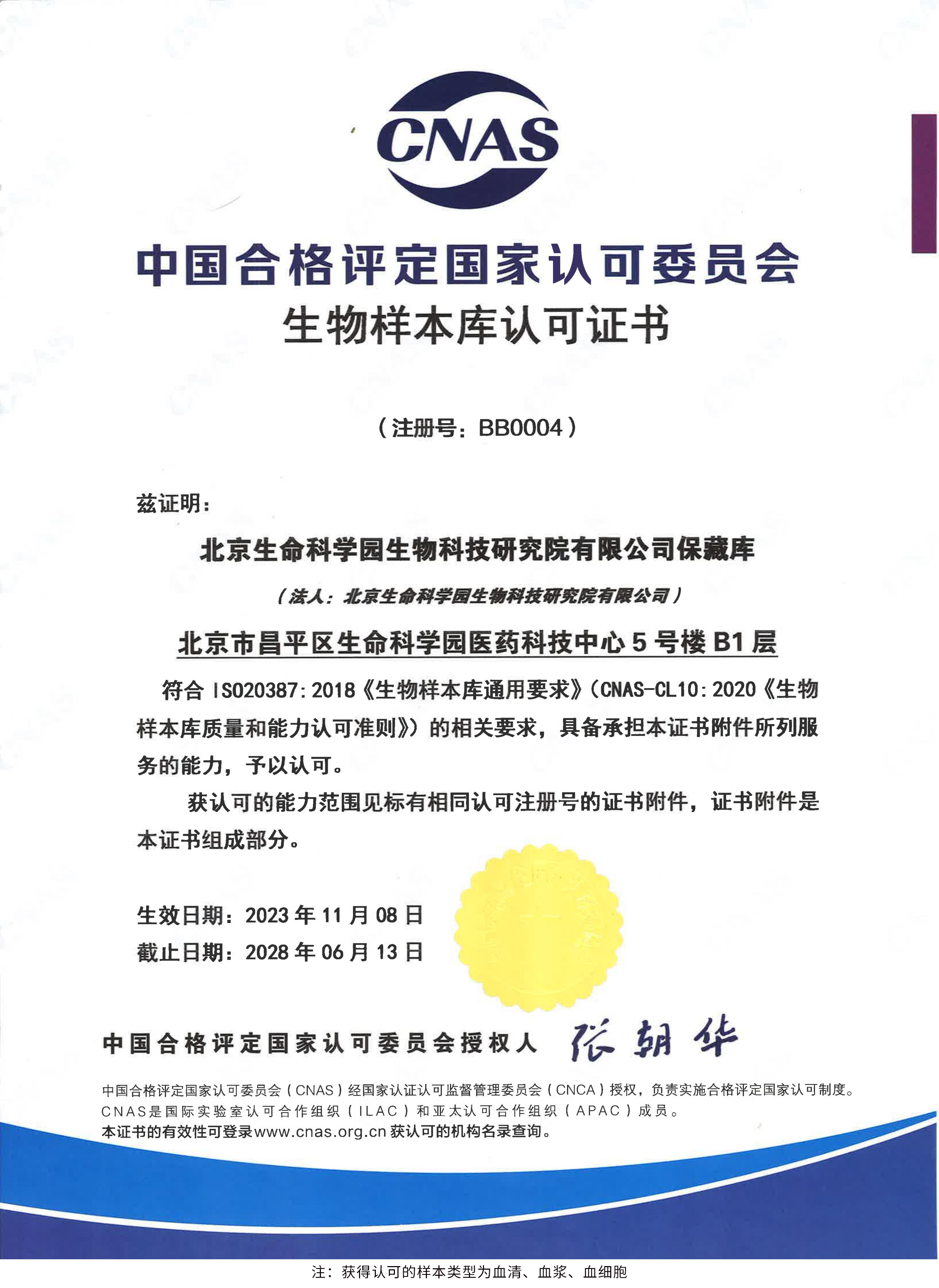 北京生命科學園生物科技研究院(以下簡稱“北京生物樣本資源庫”)(Biobank of Life Science Park,簡寫“BoLSP”)是一家由北京市科委和中關村生命科學園共同支持設立的第三方生物樣本庫公共服務平臺,秉承北京重大疾病臨床數(shù)據(jù)和樣本資源庫(以下簡稱“北京庫”)(Beijing Biobank of Clinical Resources,BBCR)十余年的發(fā)展成果,聚合眾多臨床樣本專家的專業(yè)共識,致力于在生命科學、生物醫(yī)藥研究領域發(fā)揮銜接樣本資源持有者與研究者的橋梁作用,解決生物樣本資源開發(fā)上下游信息不對稱、資源共享困難等問題。研究院在北京中關村生命科學園昌平園區(qū)建立了2000㎡生物樣本庫,最大存儲規(guī)模達1000萬份。研究院遵循CNAS-CL10:2020《生物樣本庫質量和能力認可準則》,同時結合北京庫過去十年的工作經(jīng)驗與教訓,建立了一套完善的生物樣本保藏質量管理體系,從人、機、料、法、環(huán)、控多個角度,實現(xiàn)生物樣本保藏過程的全面質量控制,先后獲得國家科技部頒發(fā)的人類遺傳資源保藏行政許可證書和中國合格評定國家認可委員會(China National Accreditation Service for Conformity Assessment,CNAS)頒發(fā)的“CNAS認可證書”。